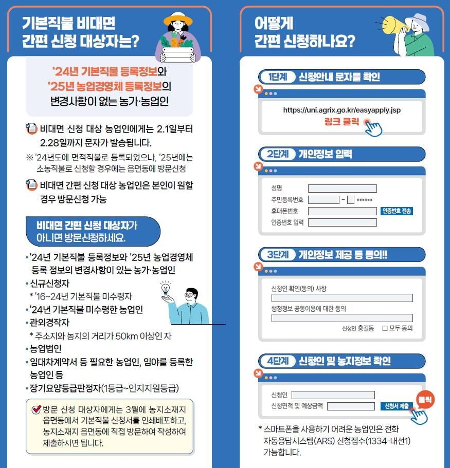 - 서류 준비 : 필요한 서류를 준비합니다. 일반적으로 농지 등록증, 신분증, 소득 증명서 등이 필요합니다.