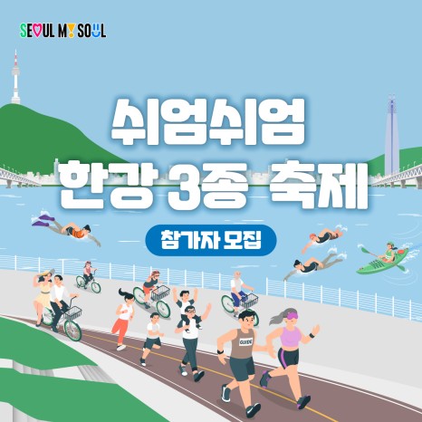 쉬엄쉬엄 한강 3종 축제는 시민 누구나 한강을 달리고, 자전거 타고, 헤엄치며 한강을 즐길 수 있도록 준비한 축제이다